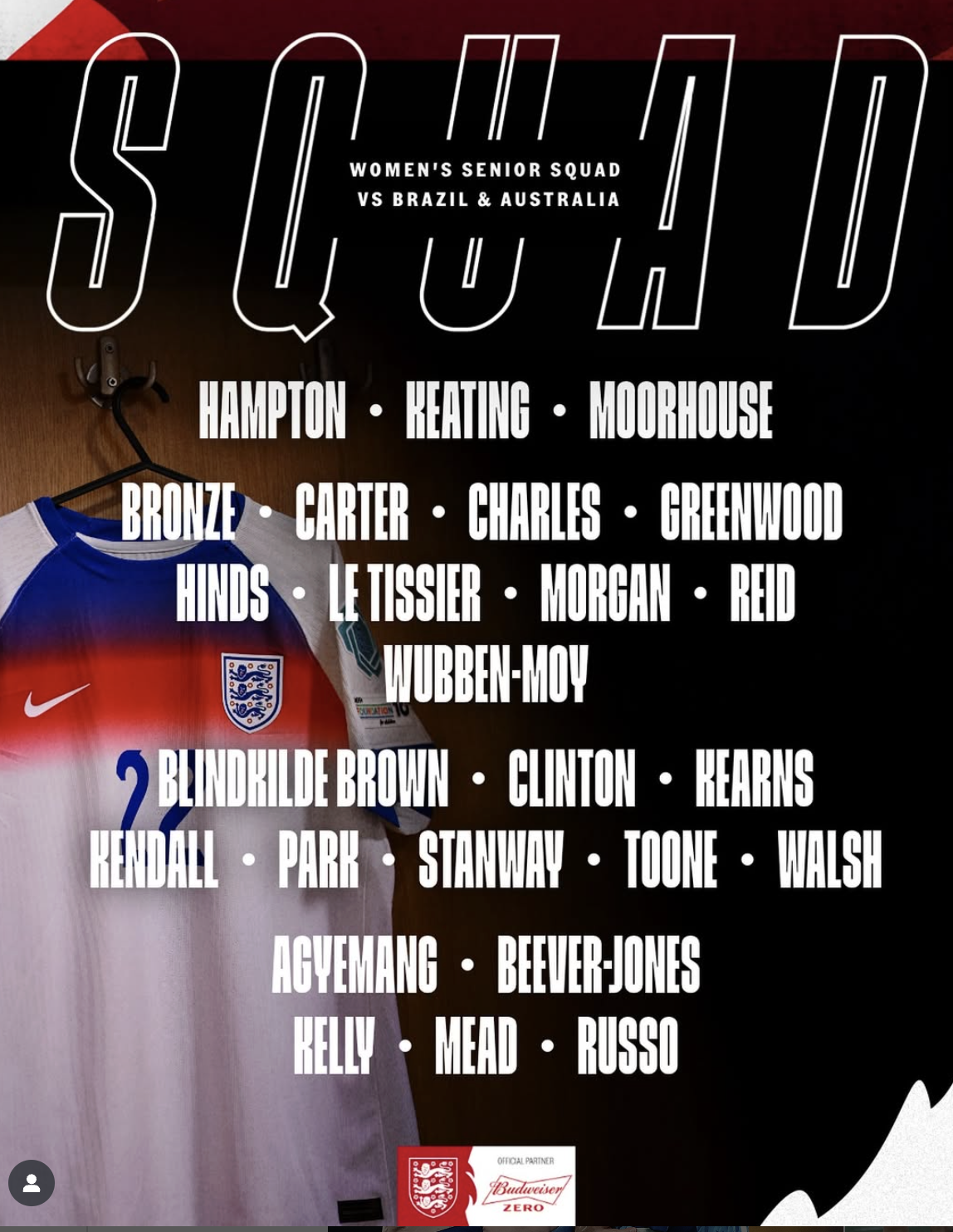 Coach Sarina Wiegman has announced the squad for the upcoming friendly matches against Brazil and Australia. The roster includes some new names.