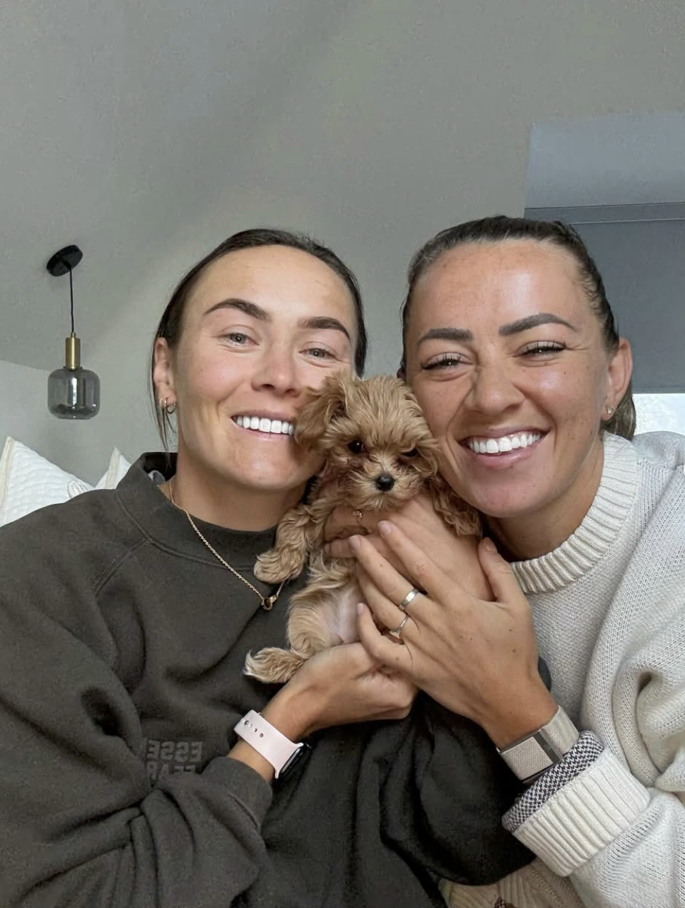 Caitlin Foord, Katie McCabe and their tiny teeny baby Peggy (Source @caitlinfoord)